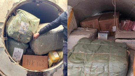 تمكنت فرقة الحرس الديواني بسيدي بوزيد إثر دورية مراقبة الجولان بإحدى المفترقات بالجهة من ضبط شاحنة ثقيلة تحمل ترقيم منجمي تونسي، بها صهريج لنقل المحروقات، تحتوي على كمية هامة من البضائع المهربة، حيث بتفتيش الصهريج تم العثور داخله على مخبأ مهيأ يحتوي على ملابس جاهزة وأحذية رياضية وسجائر الكترونية ومصوغ مزيف وكماليات الهواتف الجوالة بقيمة 1.5 مليون دينار. وأعلنت الديوانة التونسية في بلاغ لها، أنه تم تحرير محضر حجز في الغرض وأذنت النيابة العمومية إثر استشارتها بالاحتفاظ بالسائق ومواصلة...كلمات البحث :الديوانة;بضائع;سيدي بوزيد;صهريج